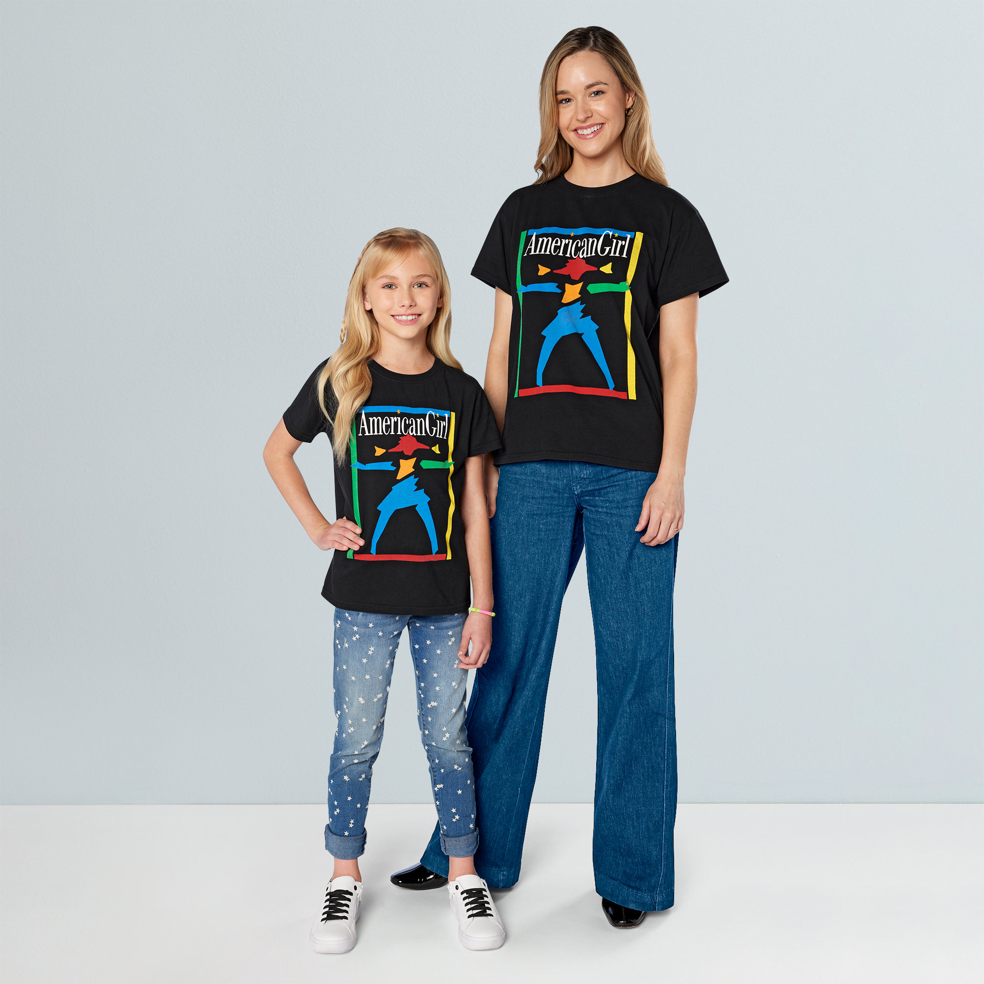 Feeling nostalgic? Adults, girls, and dolls can all channel their inner ’90s kid in matching American Girl Today shirts! This set features: